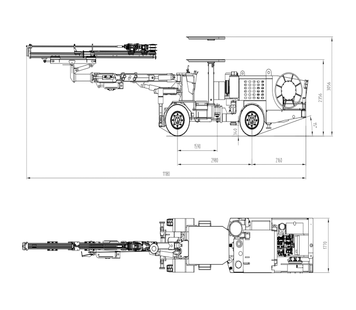 PX1DJ-45單(dan)臂鑿巖(yan)臺車是(shi)鉆爆法(fa)施工隧(sui)道開(kai)挖和支護設備。采(cai)用(yong)大(da)功率鑿巖(yan)機(ji)、鉆臂伸縮(suo)行程長,工作覆蓋面積大(da),主要核心件(jian)采(cai)用(yong)進(jin)口(kou)知(zhi)名(ming)品牌,整機(ji)具備礦安(an)認(ren)證(KA 認(ren)證)。