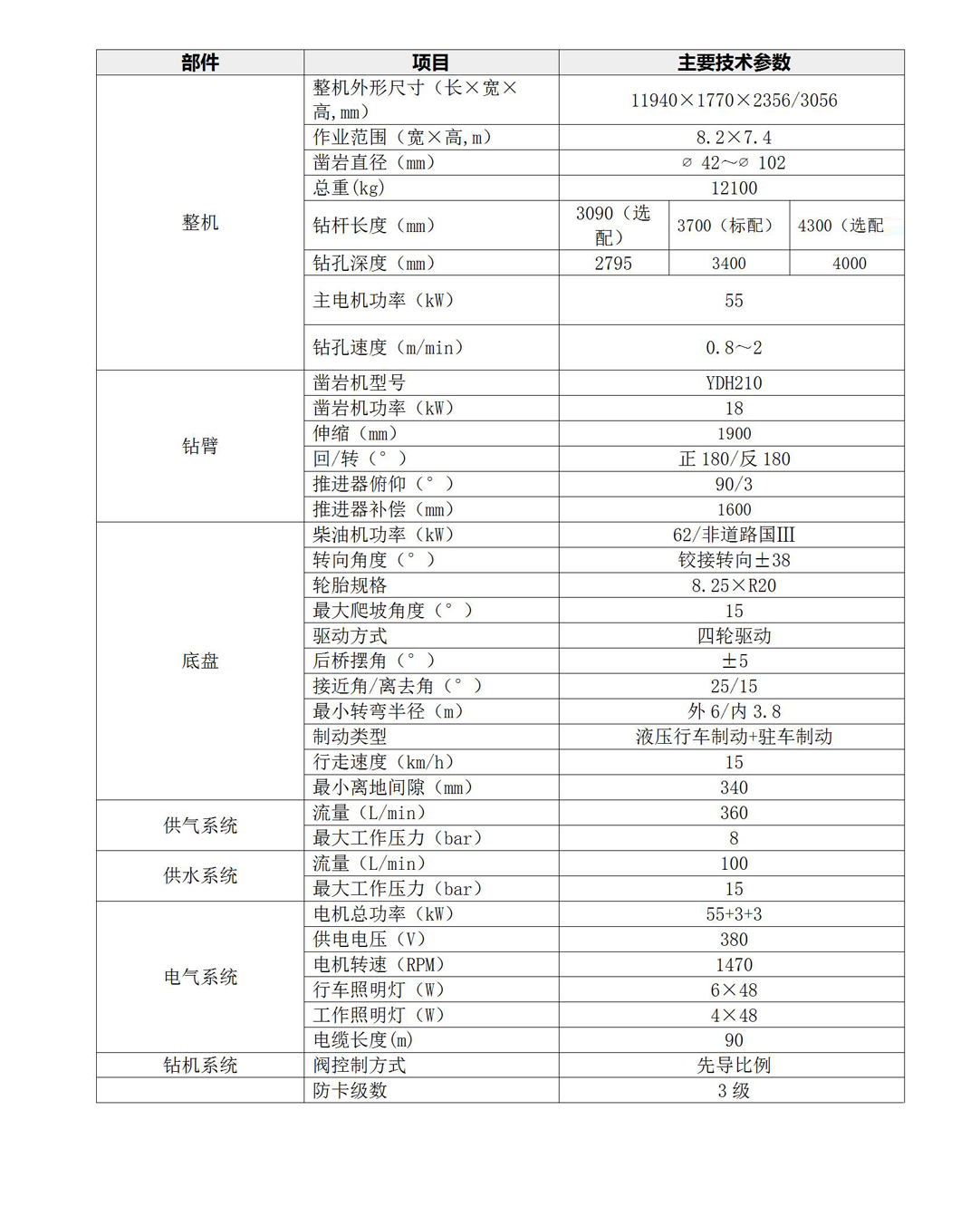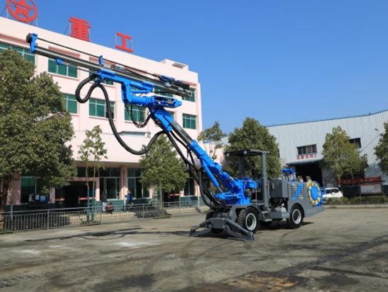 (2)采用18KW有效功率液壓鑿巖機,作業效率高、沖擊力大、回轉扭矩大,鉆孔速度快,提高整車的施工效率;