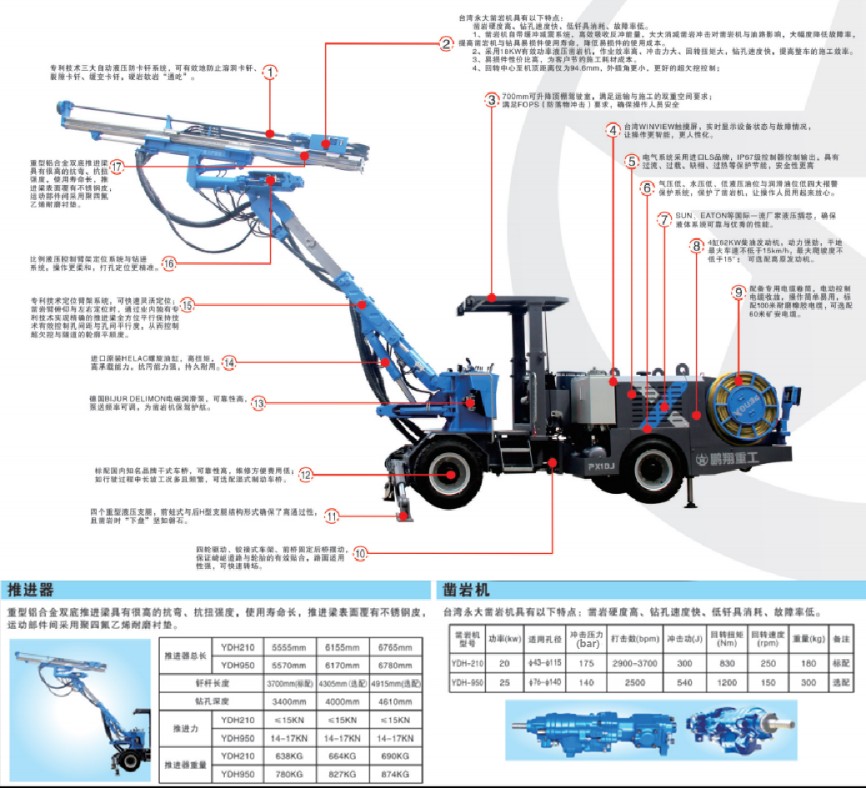 15、臺灣永大鑿巖機具有以下特點:鑿巖硬度高、鉆孔速度快、低釬具消耗、故障率低;